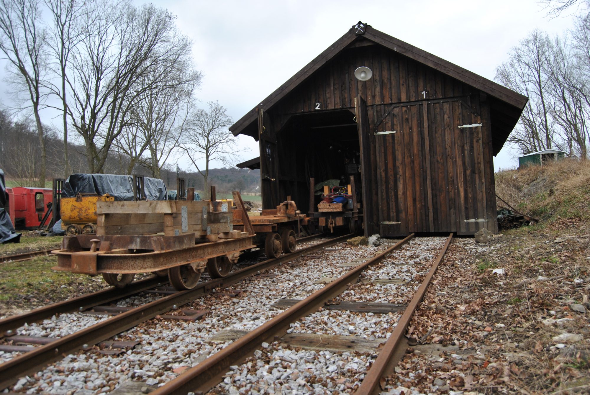 Es sah echt fast mysteriös aus mit den Schienen, den alten Holzhütten und vor allem dem großen Tor, was den Eingang zum Stollen verschloss.