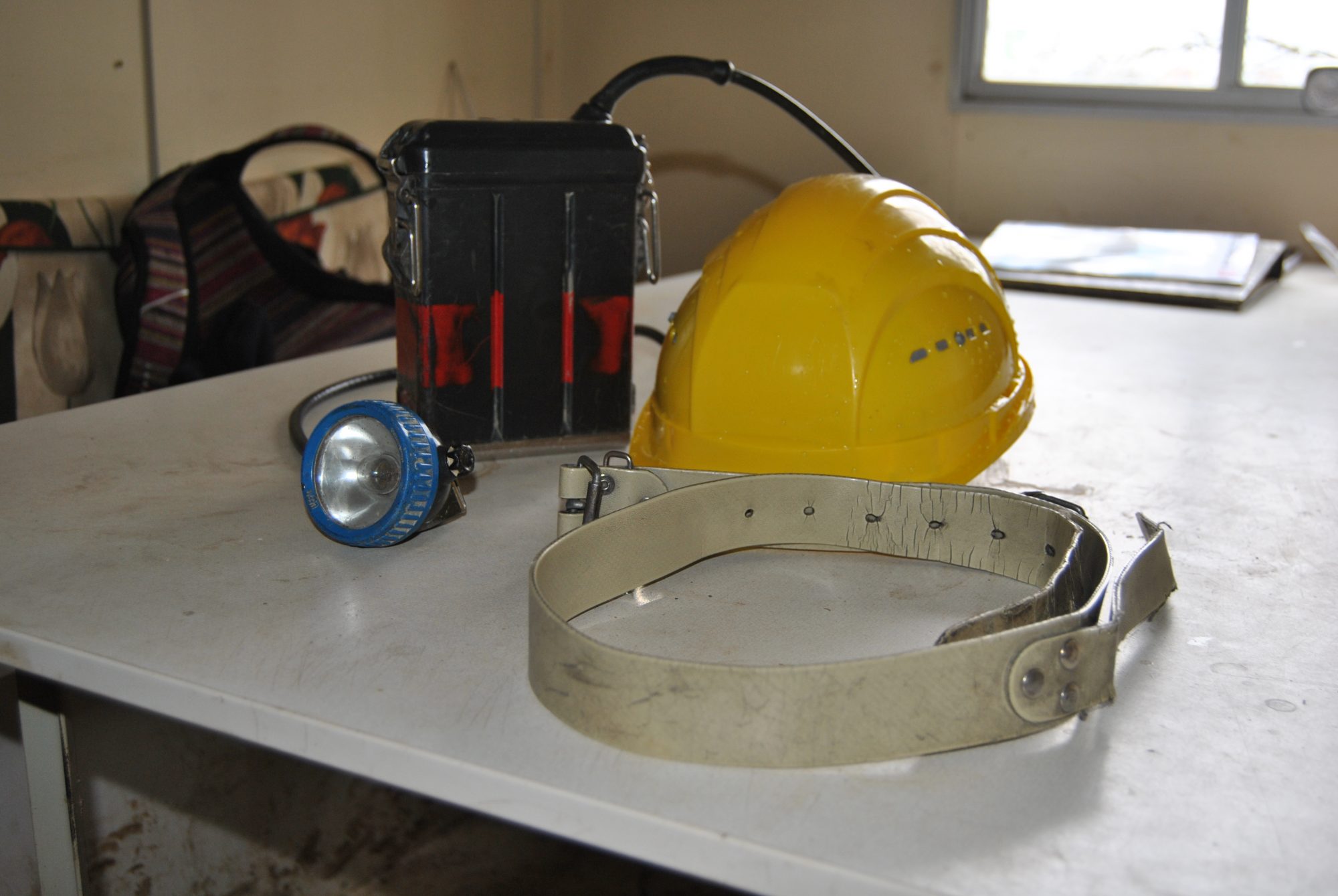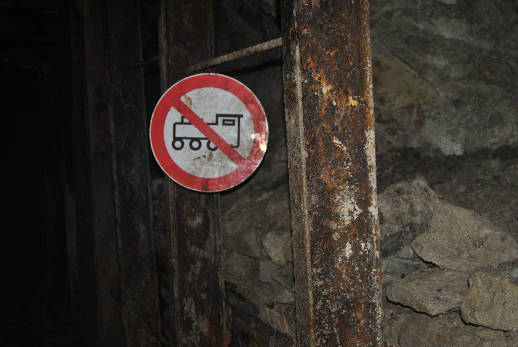 Jetzt ging es aber wirklich abwärts! Ich wurde mit Schutzhelm, Kopfleuchte und Gurt ausgerüstete und stampfte mit Herrn Dützer zusammen in Richtung Stolleneingang. Wie schon gesagt, finde ich den Eingang vom Stollen ja besonders mysteriös… fast schon gespenstisch irgendwie. Herr Dützer schloss die großen eisernen Tore auf und öffnete den Stollen und man sah… nicht besonders viel! Der Stollen ist eben nicht beleuchtet und deshalb auch relativ dunkel. Obwohl was heißt relativ dunkel? Ehrlich gesagt, war es eigentlich eher stockfinster und die spärliche Beleuchtung, die Herr Dützer und ich am Kopf hatten, trug jetzt nicht so richtig dazu bei, dass der Stollen beleuchtet wurde. Aber das macht das Ganze nur irgendwie noch abenteuerlicher. So als würde ich in unerforschten, unterirdischen Gängen nach verschollenen, alten Relikten suchen. Das mit der Dunkelheit war aber auch ein bisschen meine eigene Schuld. Denn irgendwie hat mein Kopf es nicht ganz begriffen, dass das Licht (was auf meinem Kopf ist) sich auch mit meinem Kopf bewegte. Also eigentlich ja ganz praktisch. Theoretisch sollte das Licht ja immer dahin leuchten wo ich meinen Kopf hinbewegte… aber auch eben nur theoretisch. In der Praxis sah es bei mir zumindest anders aus: Augen-Licht-Kopf-Koordination klappte eher so mittelmäßig.