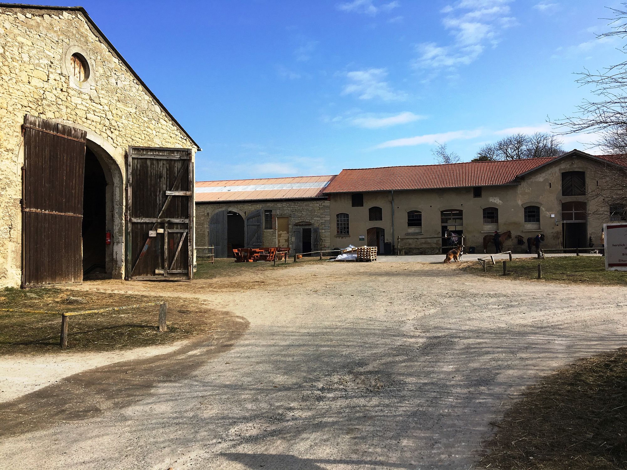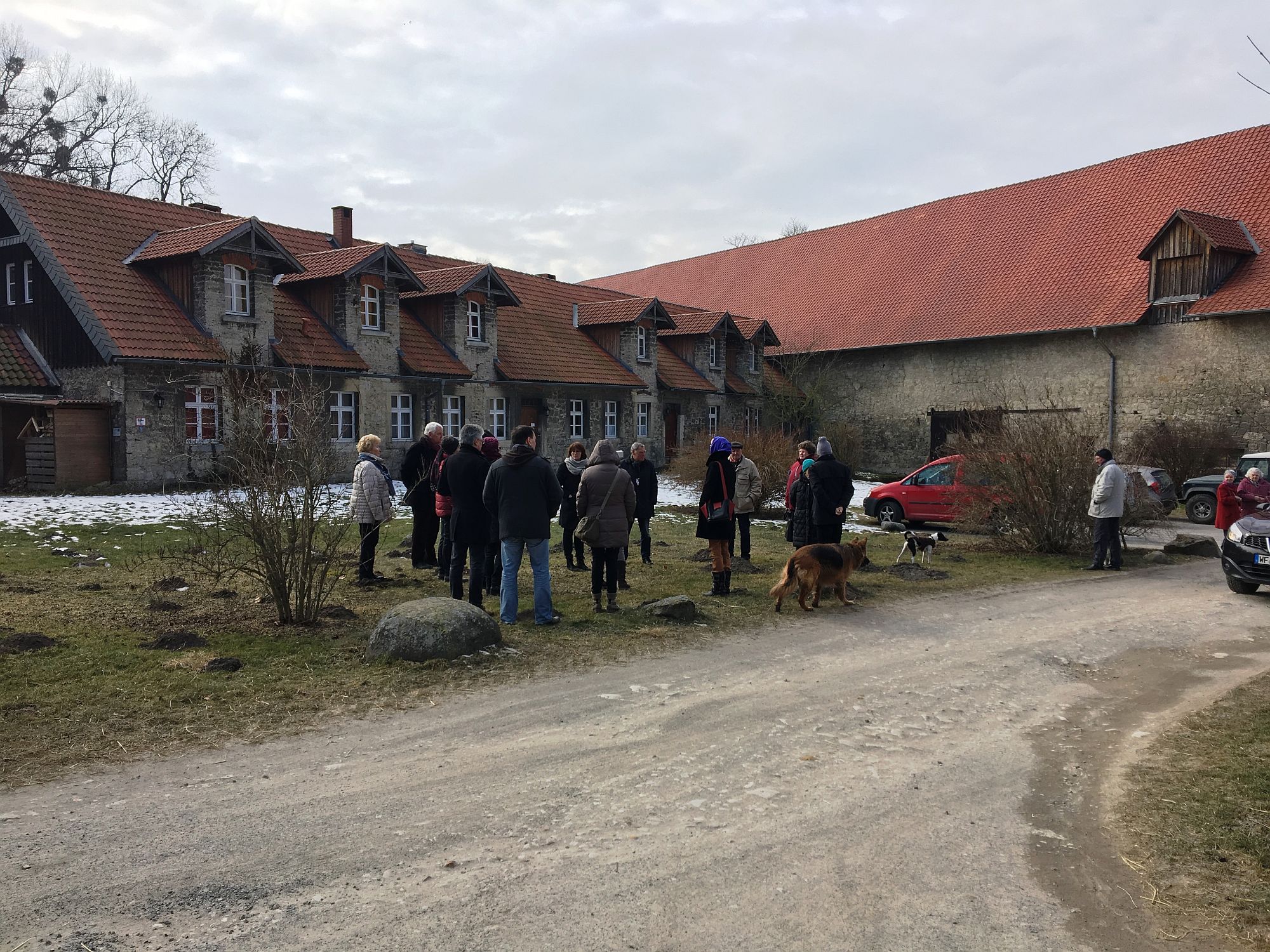 Nach einer kurzen Einführung im CaféGut ging die Besichtigung über verschiedene Stationen: Kleiner Wirtschaftshof, großer Wirtschaftshof, Kirche, Gutshaus.