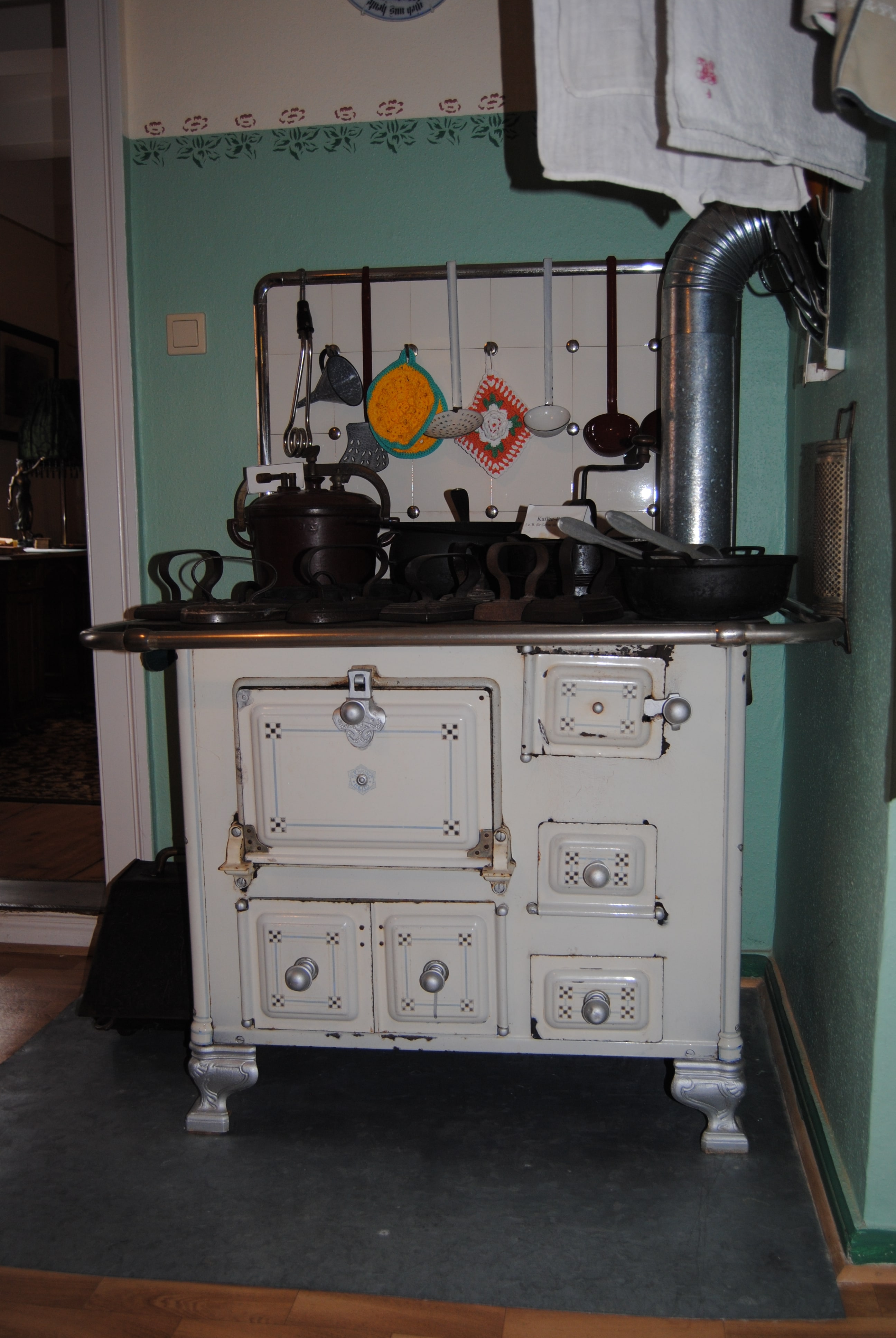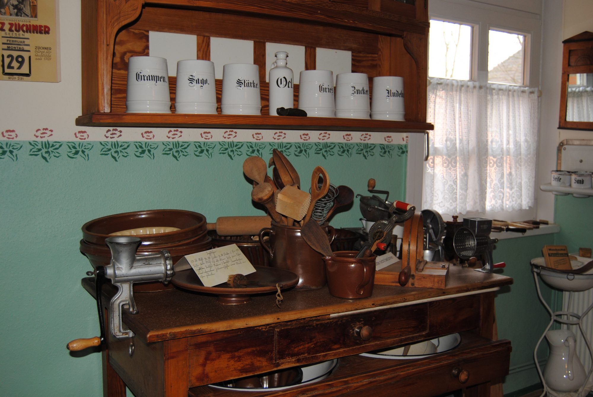Wir gingen in den letzten Ausstellungsraum und schon wieder wurde ich überrascht, denn plötzlich stand ich in Omas alter Küche und konnte quasi schon den leckeren Kuchen aus dem Ofen riechen, der noch traditionell mit Holz geheizt wurde. Antikes Kaffeegeschirr, alte Holzschalen und Krüge standen in einem hübschen Küchenbuffet direkt neben dem originalen Butterstampfer. Wenn ich das alles so sehe bin ich froh, dass wir es da, dank Supermarkt und Co., zum Glück um einiges leichter haben, als die Menschen damals. Obwohl ich mir sicher bin, dass die selbstgemachte Butter aus dem Stampfer 1000mal besser schmeckt als unsere Supermarktbutter…
