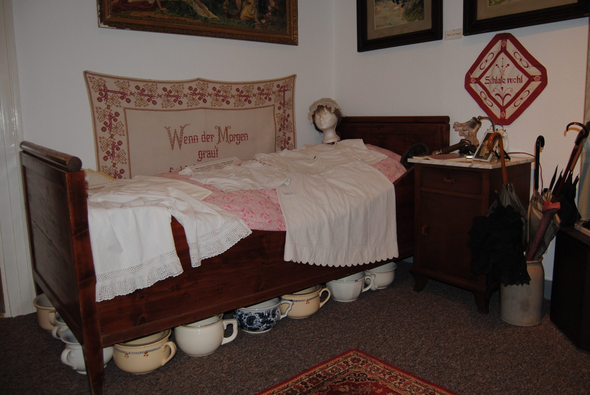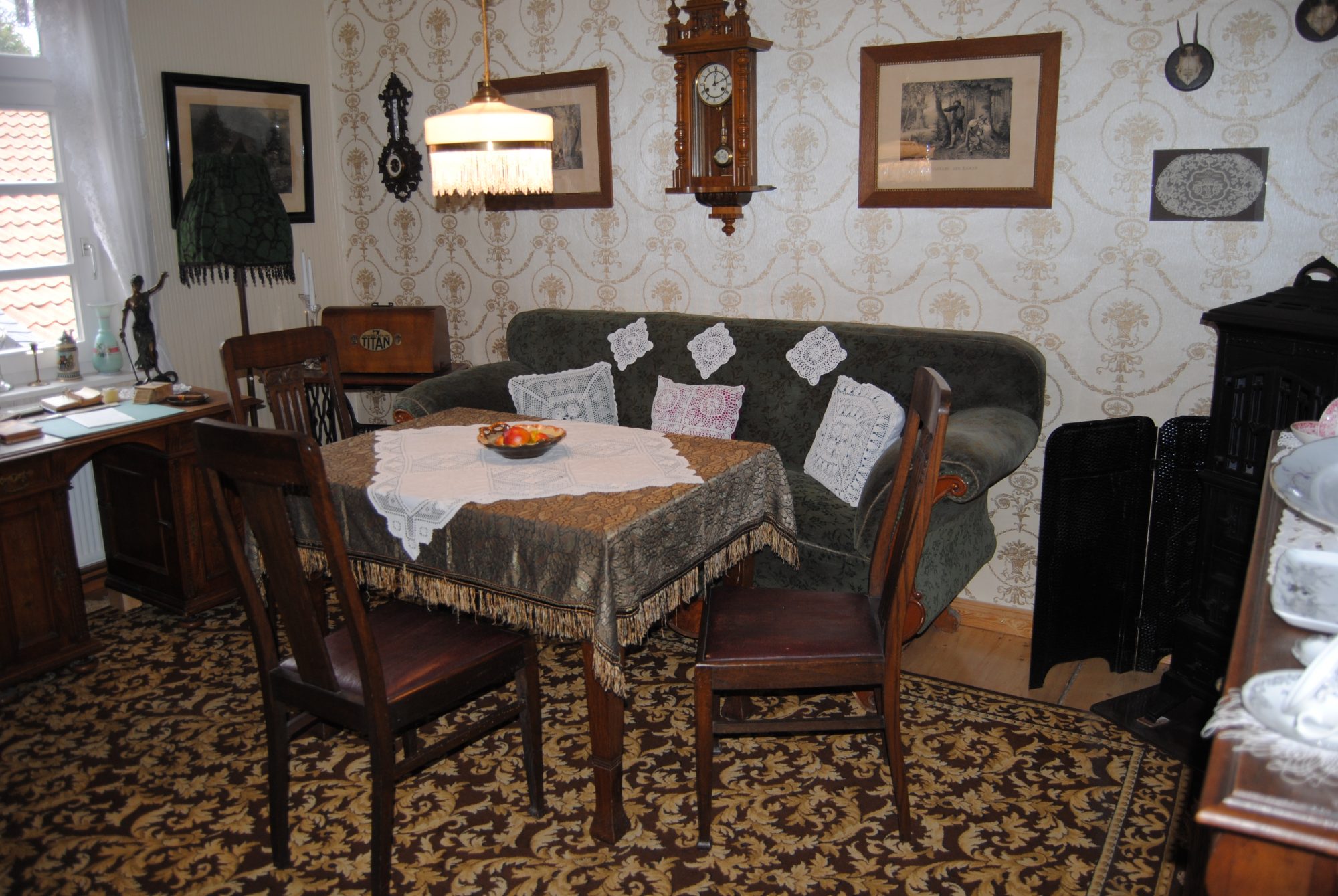 Nächster Halt war Omas Stübchen. Ein Wohnzimmer im Jugendstil nachgebildet. Die Tapete für diesen Raum, sagte Herr Züchner, hat das Heimatmuseum extra in England anfertigen lassen, um alles so originalgetreu wie möglich aussehen zu lassen. Und ein besonderes Schmankerl hat Omas Stübchen auch noch: Man kann dort standesamtlich heiraten was eine, finde ich zumindest, ziemlich schöne Idee ist!